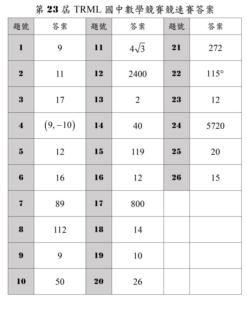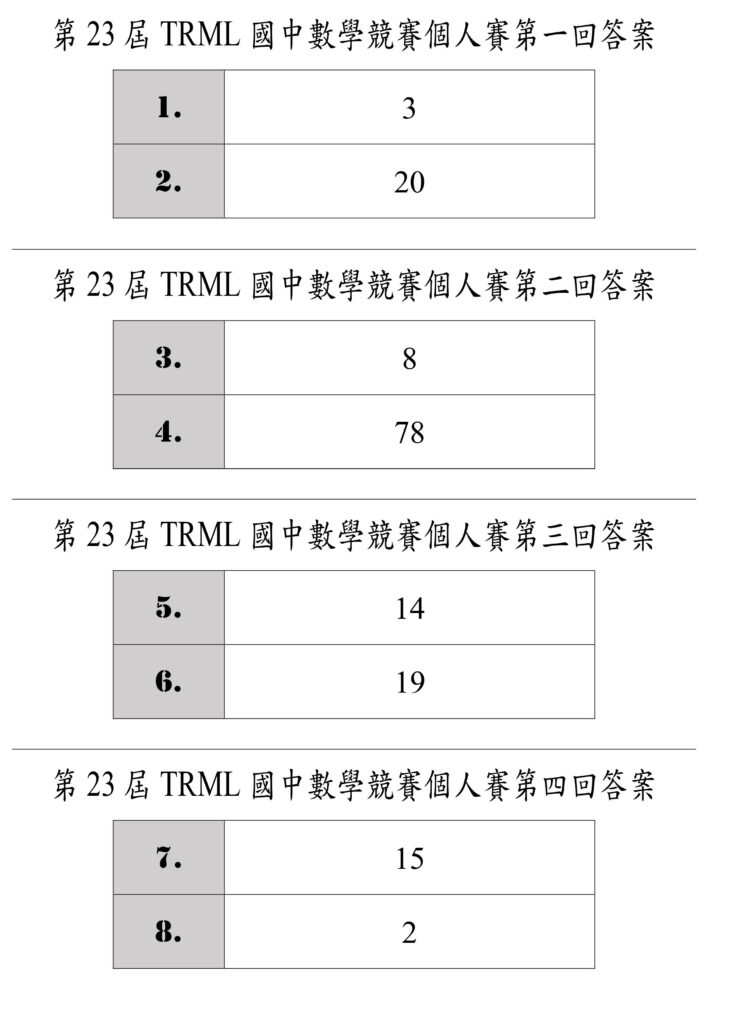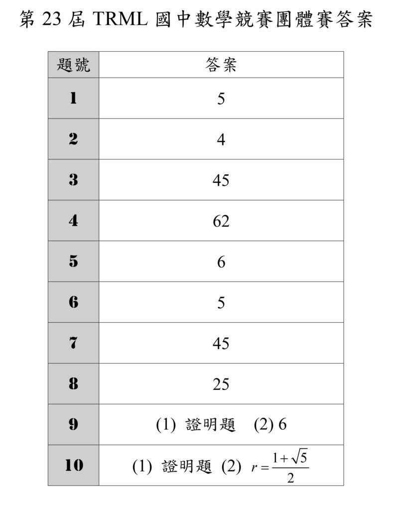 第23屆TRML國中數學競賽答案